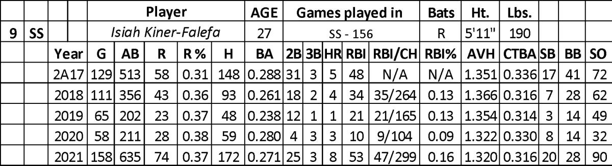Heading into 2021, Kiner-Falefa didn’t bring much excitement to the table, but the Rangers were willing to give him a starting job. Every day at-bats helped his counting stats, leading to career-highs in just about every category.