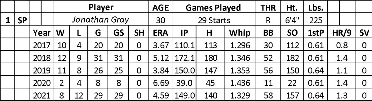 Surprisingly, Gray was a better pitcher at home (4.02 ERA, 1.149 WHIP, and 80 strikeouts over 78.1 innings in 2021. Road opponents hit .285 against him, leading to a 5.22 ERA, 1,527 WHIP, and 77 strikeouts over 70.2 innings. He also struggled after the All-Star break (5.71 ERA, 1.476 WHIP, and 77 strikeouts over 63 innings).