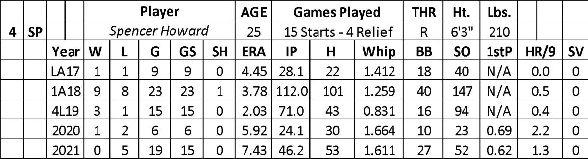 Howard doesn’t belong in the majors at this point in his career based on his failure over 25 games (1-7 with a 6.93 ERA, 1.622 WHIP, and 75 strikeouts over 74 innings). In addition, he battled a finger injury and Covid-19 in 2021.