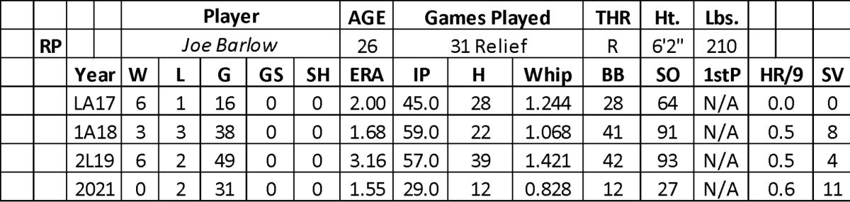 After five seasons in the minors, Barlow went 17-11 with a 2.64 ERA, 306 strikeouts, and 21 saves over 214.2 innings. Texas called him up last June. The Rangers moved him into their closing role after pitching well over his first 12.2 innings (one run and 17 strikeouts). He converted 11 of 12 save chances with a 2.20 ERA and 10 strikeouts over 16.1 innings.