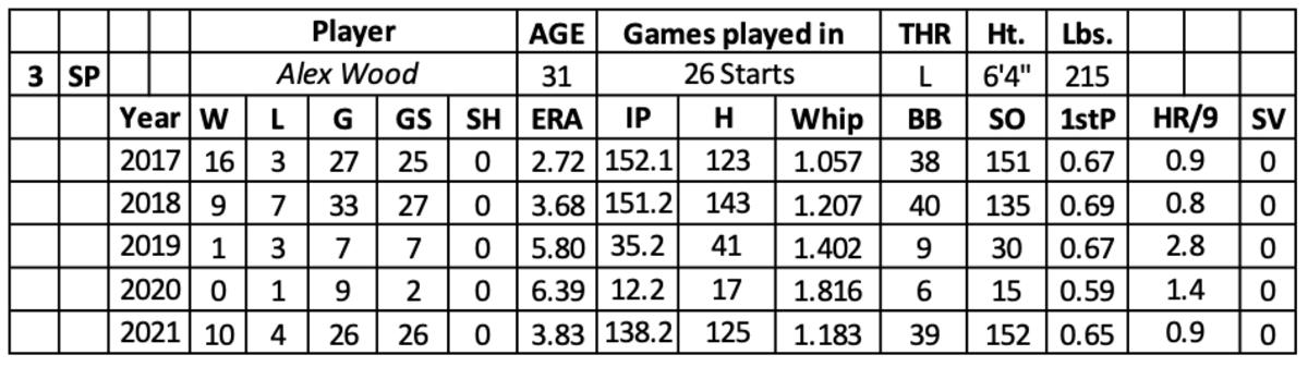 Last year, he missed the first 17 days of the season with a back issue and about three weeks later in the year with Covid-19. Wood allowed two runs or fewer in 17 of his 26 starts. His arm had less value on the road (4.20 ERA, 1.401 WHIP and 63 strikeouts over 55.2 innings.