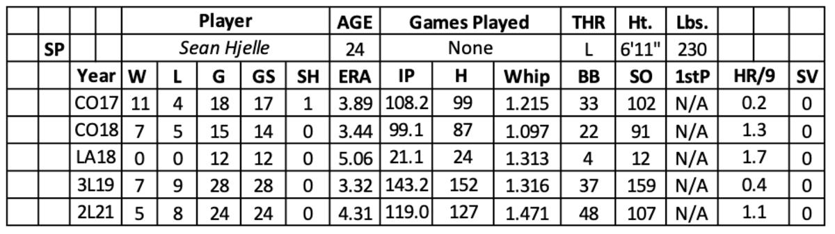 After struggling in 2018 at low A (6.75 ERA) while only tossing 21.1 innings over 12 starts, Hjelle pushed his way through three levels in 2019 (7-9 with a 3.32 ERA and 139 strikeouts over 143.2 innings). However, his stuff lost value at AA (6.04 ERA and 1.855 WHIP).