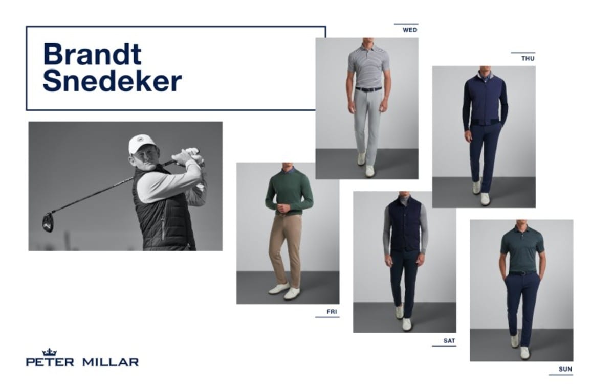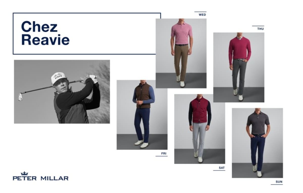 Chez Reavie's color palate reflects Peter Millar's fall 2020 line of products. Premium fabrics and signature design bring technical prowess to both the Classic Fit and Tailored Fit silhouettes that seamlessly transition from 18 holes to the clubhouse and beyond. Reavie will wear Peter Millar's Crown Sport products in a Classic Fit.