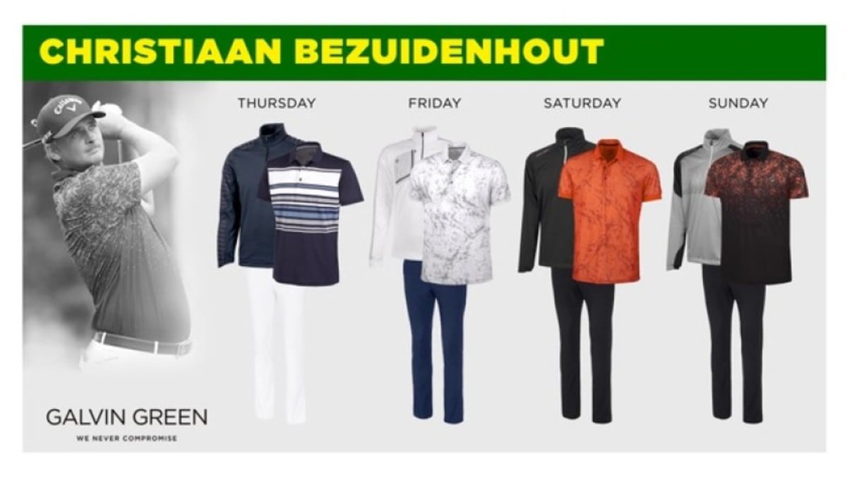Christiaan Bezuidenhout will make his Masters debut and looks to finish his tournament with style on Sunday. He will sport the Mason Ventil8 shirt that showcases a starry-night theme across the chest and back that will help him stand out in the crowd. His outerwear choice of the day will be the Lex Interface pullover that is completely windproof and highly water resistant to help him battle the elements expected for the week. He will wear the signature Noah Ventil8 pant to finish his Masters weekend.