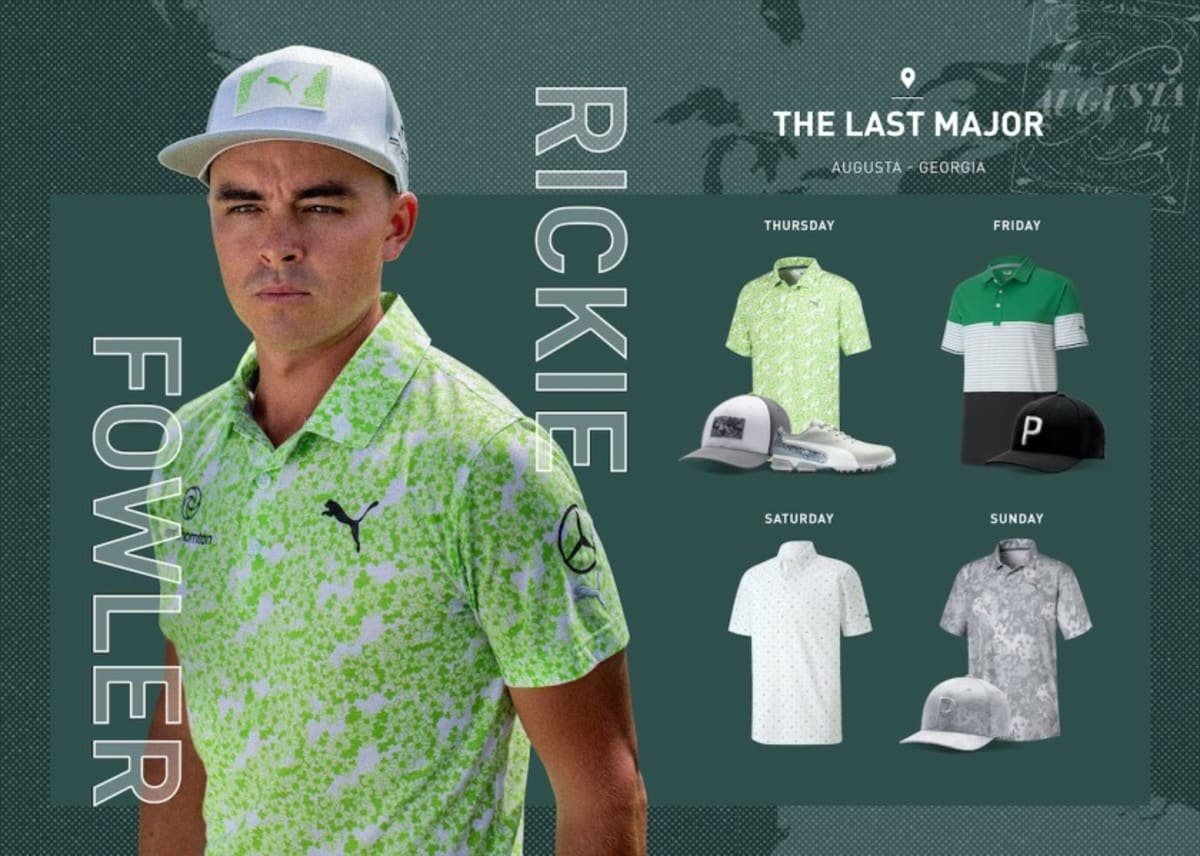 Rickie Fowler's week will be highlighted on Thursday when he wears Puma’s Eleven Polo and Experience Collection's Utility Patch Cap, inspired by the flora that typically surrounds Augusta National's most talked about three-hole stretch, Amen Corner. The collection pays homage to what has traditionally been the year’s first major, designed to deliver the excitement that this event continues to inspire despite its new calendar date.