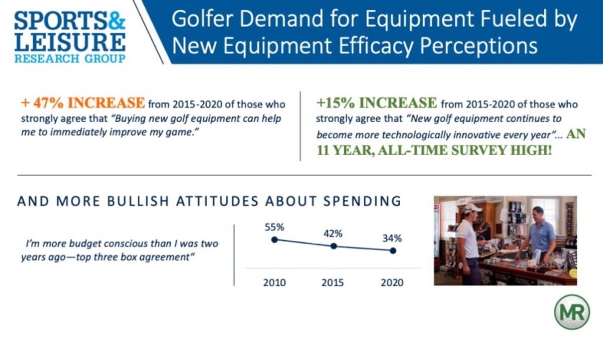 So, why are golfers looking to pay more for their equipment? Our research continues to show that consumers are buying into the expectation that new equipment will lead to immediate game improvement. The percentage of those who subscribe to this thinking has increased nearly 47 percent over the past five years. This efficacy expectation has been driven by a mix of great product, great marketing and overall consumer confidence and resiliency among golfers — even amid the COVID-19 pandemic.