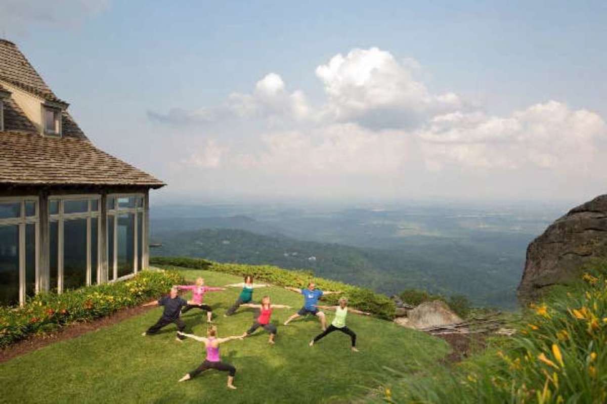 Yoga classes that overlook the Blue Ridge Mountains are just one of the amenities offered at The Cliffs at Glassy. (Photo: The Cliffs)