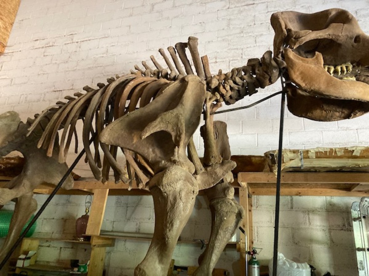 Byers' family still owns a warehouse a few hundred yards away that is not open to the public. Inside, there was a full-sized mastodon skeleton replica made from the casts of Donny Mastodon’s bones. It’s an imposing, unforgettable sight. An upright mastodon, even just the skeleton, makes an elephant look like My Little Pony. And those huge curved tusks. I would love to see those in action … from a safe distance, of course.