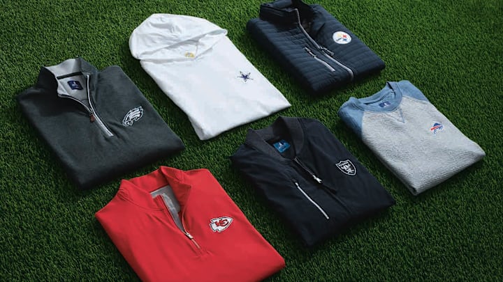 Johnnie-O’s NFL line has 29 different styles for both men and women, ranging from polos to quarter-zips to elevated lifestyle apparel. I’m partial to the Stetson Performance Mesh polo ($130) and the Motion Performance quarter-zip ($148) for those fall Saturday rounds that start out cool but can maybe allow for shedding a layer later.