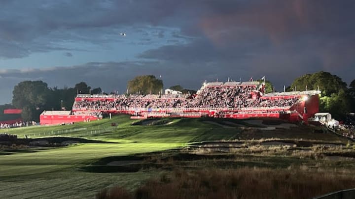 For the 2025 Ryder Cup, organizers actually spread the grandstands behind the first tee and the 18th green, a move that might have backfired. The more intimate setting around the first tee with a few thousand fans packed in creates a deafening noise and can be considerably intimidating to the opposing team.
