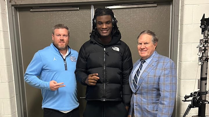 2026 4-star edge rusher Zavion Griffin-Haynes posted on X Monday morning a photo of himself with Belichick, as the Tar Heels head coach visited the defensive end at Rolesville High School.