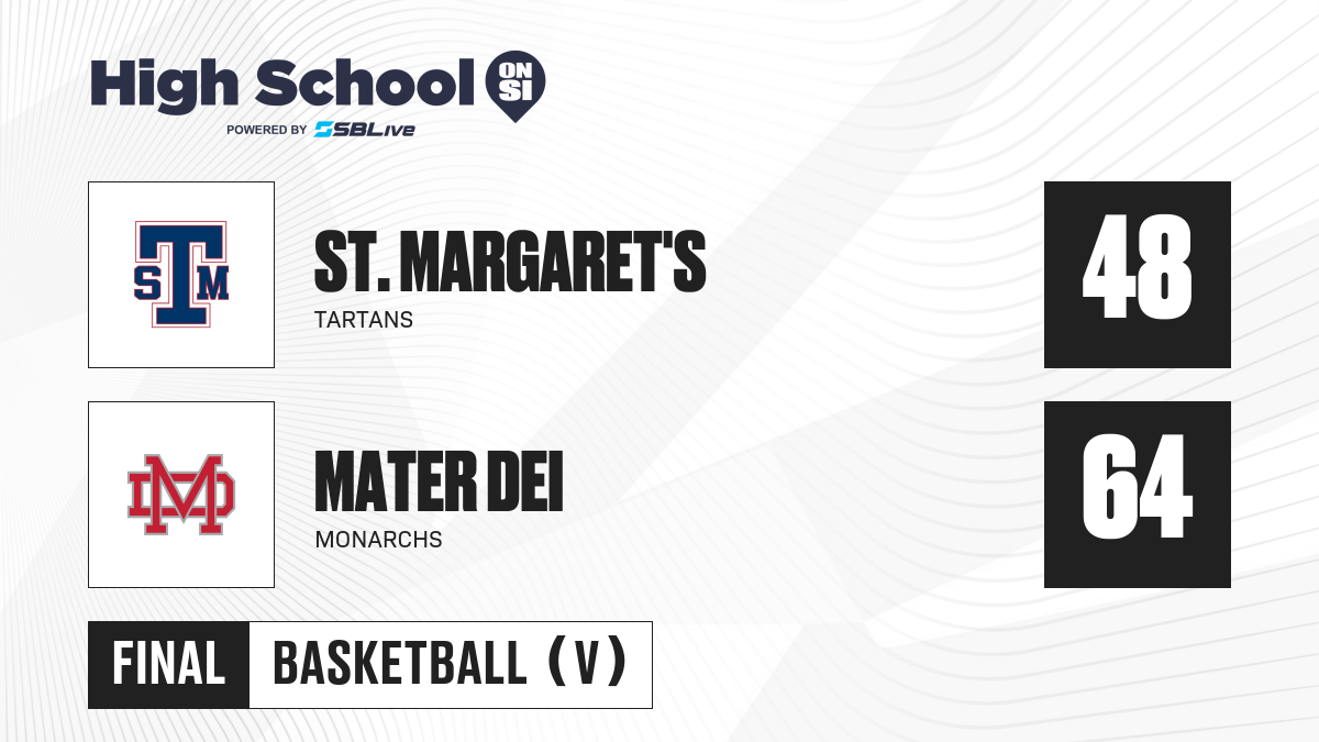 Mater Dei Forward Wilhelm Breidenbach led the way with 12 points as the Monarchs beat <a href=’/california/basketball/teams/147541-st-margarets-tartans’ alt=’St. Margaret’s Tartans’> St. Margaret’s Tartans</a> 64-48 in a game at Santa Ana, CA.