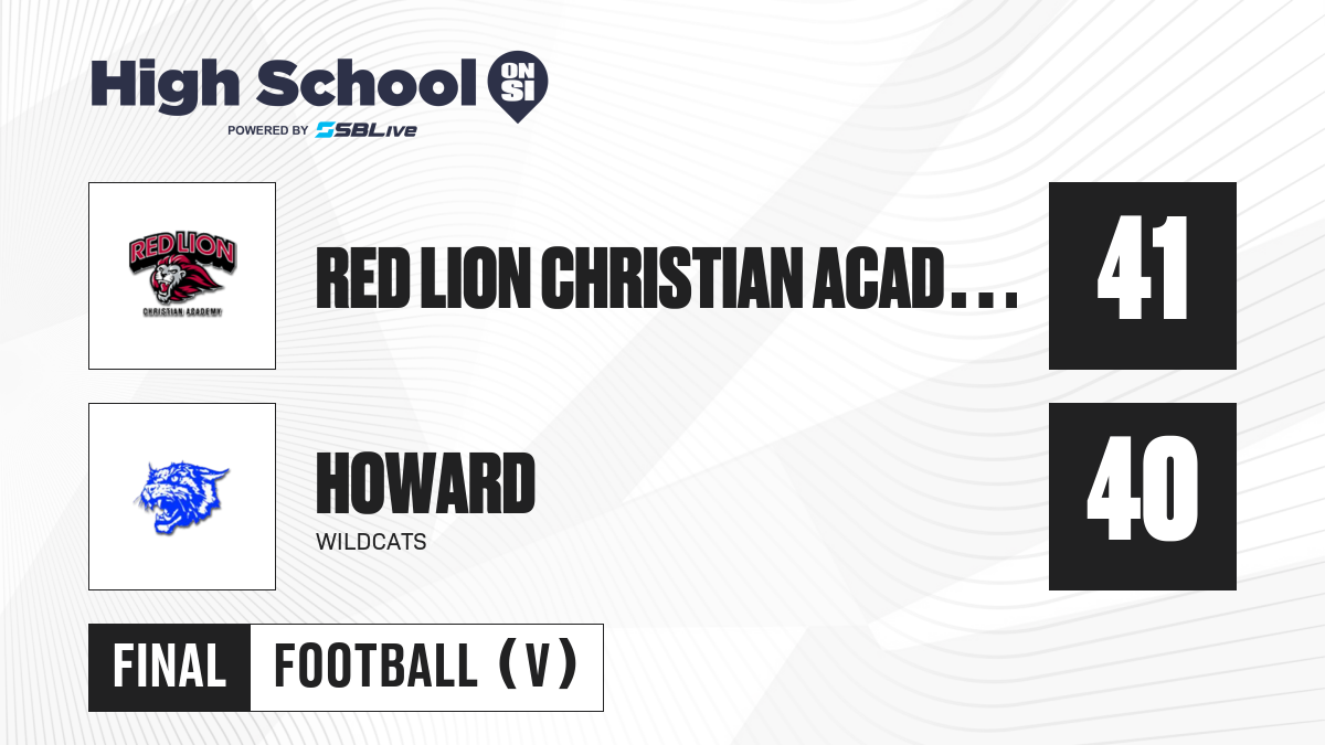 The Wildcats and Red Lion Christian Academy played each other in the 2024 postseason. Howard won that game 40-14 on Nov. 23, 2024, in Bear, Del. (Howard scoring by quarter: 14-6-0-20; Red Lion Christian Academy: 0-0-0-14).