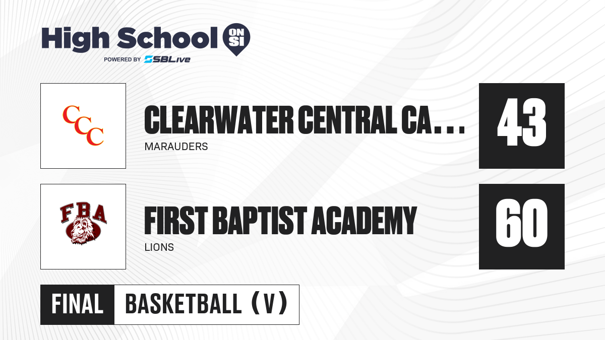 This one-night matchup pits the Clearwater Central Catholic Marauders against the host First Baptist Academy Lions in Naples. Records and details from recent meetings were not provided in the game data; check the SBLive team pages above for the latest updates and box scores as they become available.