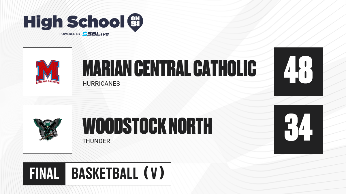 Marian Central Catholic Hurricanes defeat Woodstock North Thunder 48-34 in Illinois high school basketball game