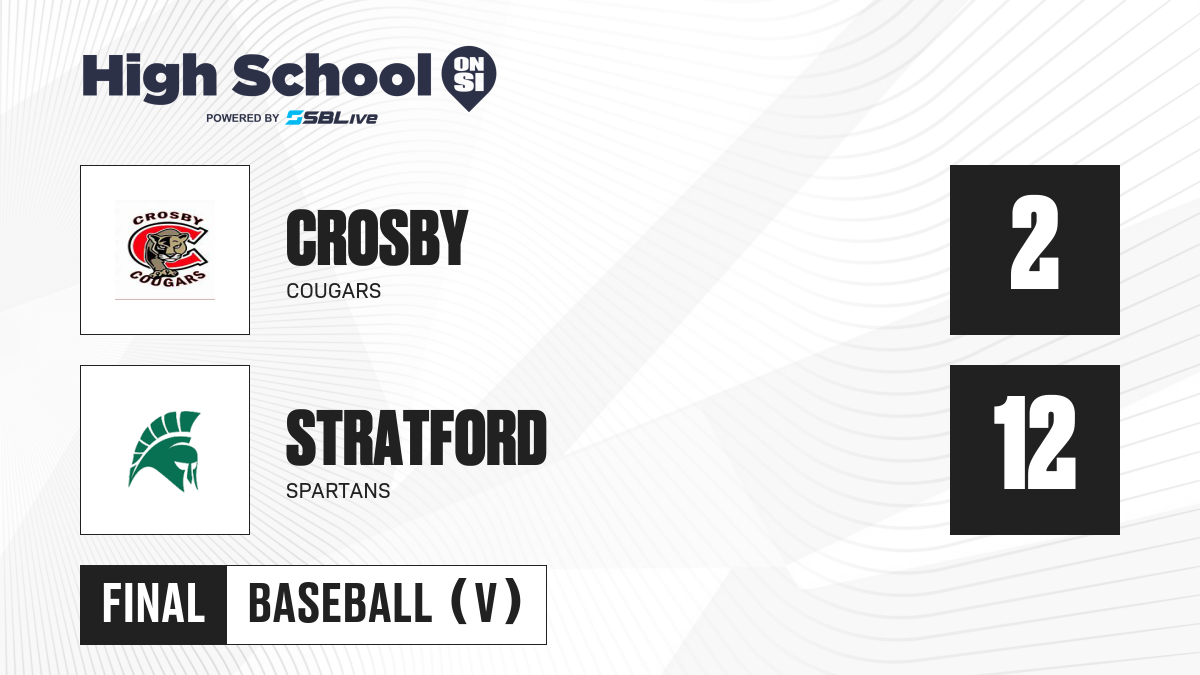 Stratford defeats Crosby 12-2