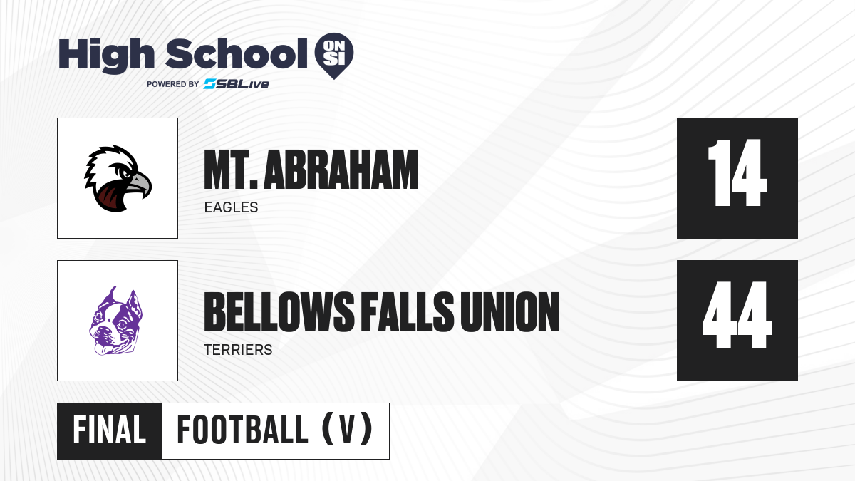The Mt. Abraham Eagles will face the Bellows Falls Union Terriers at Bellows Falls UHS in Bellows Falls, Vt., with kickoff set for 7 p.m. EST. This one-off, winner-advances playoff date is tracked on SBLive: https://scorebooklive.com/vermont/football/games/5933367-mt-abraham-vs-bellows-falls-union.