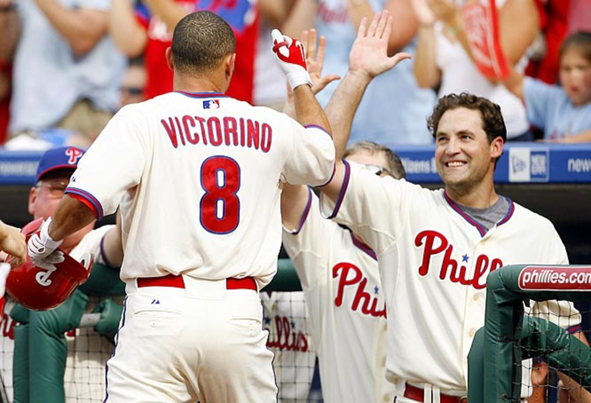 The Phils forced extra innings when Atlanta second baseman Kelly Johnson dropped a pop-up that would have ended the game in the ninth. Shane Victorino put the Phils ahead in the top of the 10th with a go-ahead triple and threw out the potential game-tying run at home plate in the bottom half to end the game.