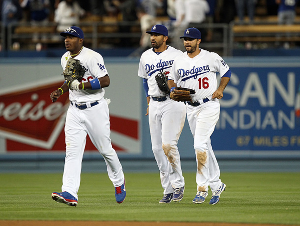 Left to right: Yasiel Puig, Matt Kemp and Andre Ethier could give the Dodgers a formidable outfield if they all stay healthy. (Adam Davis/Icon SMI)