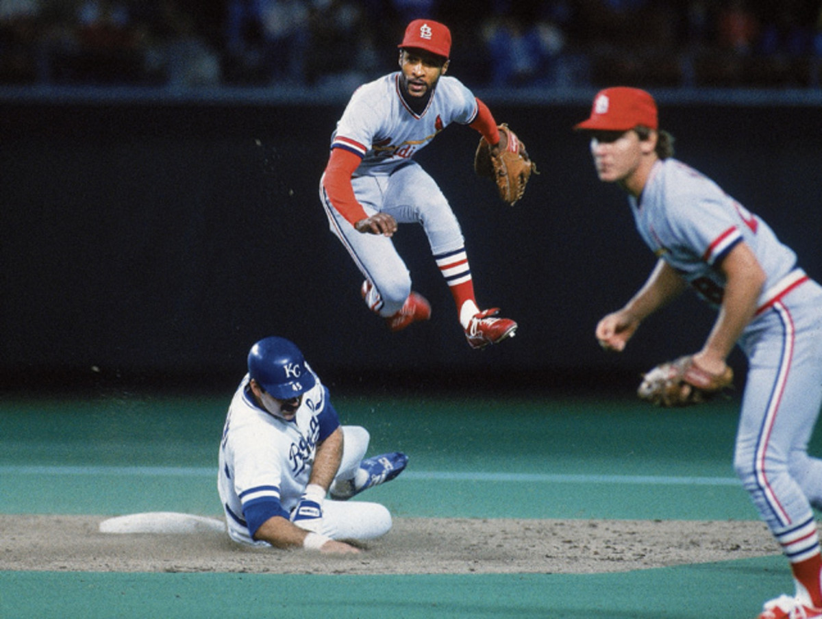 The "Wizard of Oz" helps turns a double play against the Kansas City Royals in the 1985 World Series, which the Cardinals lost in seven games. Smith, a 13-time Gold Glove winner and 15-time All-Star, was a first-ballot Hall of Famer.
