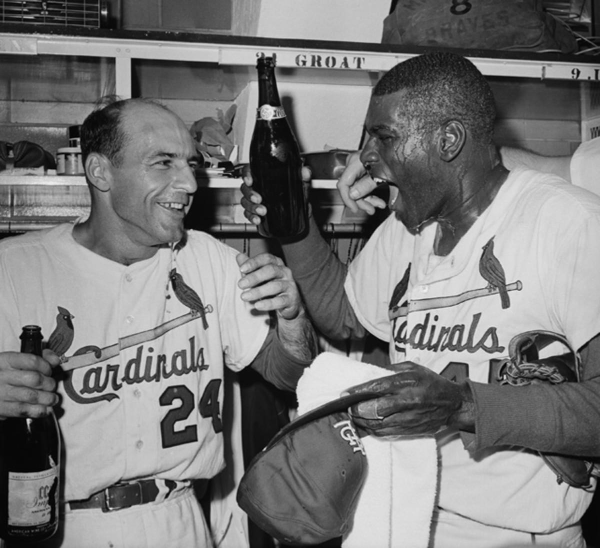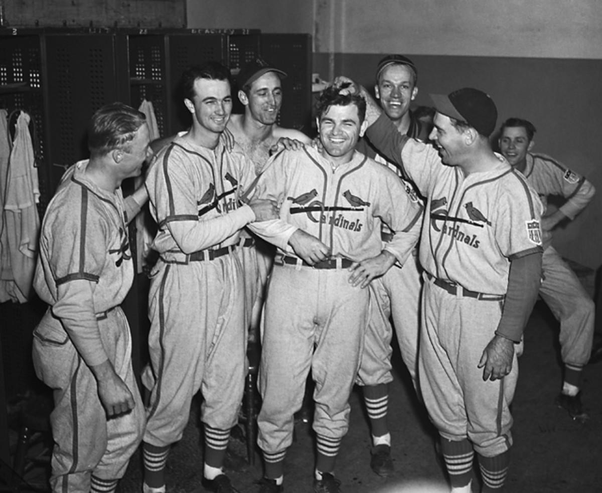 The Cardinals' stars pose after winning the National League championship game against the Brooklyn Dodgers. Slaughter and Musial are both members of the Baseball Hall of Fame.