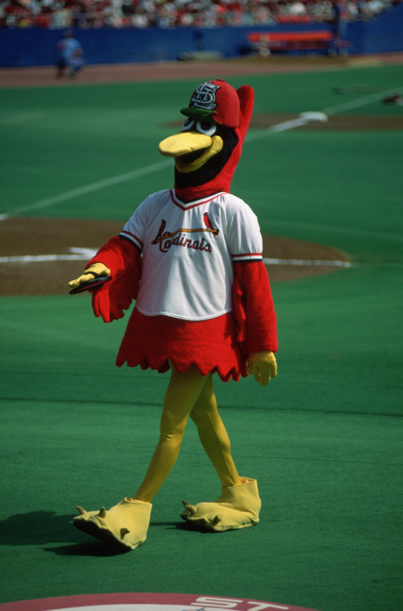 The Cardinals' mascot walks through Busch Stadium. Joe Torre was the team's manager in the early '90s, but he failed to make the playoffs and was replaced by Tony La Russa in 1996.