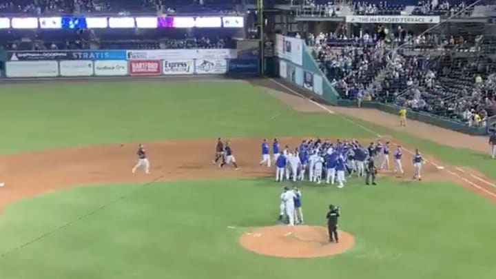 A push bunt up the first-base line eluded Bowden, and Lipka reached first for Trenton's only hit of the night. After the Yard Goats secured the final two outs to seal a 3–0 victory, both teams cleared the benches and faced off on the field.