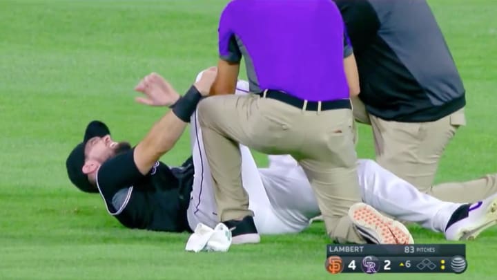 Dahl tracked down a routine fly ball in center field, but slipped on the grass at Coors Field as he made the grab. His left ankle appeared to turn as he slipped on the turf, causing Dahl to collapse in pain and grab his ankle.