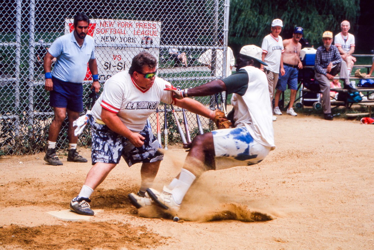 To anyone who has waited for the downtown 6 train at 86th Street on a Monday morning, such proximity is no big deal. In fact, it has upside. “I spent so much time standing a few feet away from [the Times’s] Charlie LeDuff in the outfield,” says Kelvin Bias, who played 15-odd years for SI, “that we became good friends.”