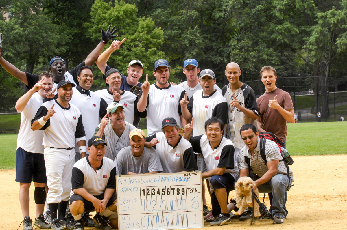 It wasn’t. When King, who’d worked at the magazine since 1989, showed up he encountered a bunch of faces he didn’t recognize. Most were not SI employees. Some, like starting shortstop Stephen Skalocky, who played his first Press League game before he even stepped into SI’s office, were interns. (Skalocky, now the mag’s creative director, would acquit himself well on and off the field.)