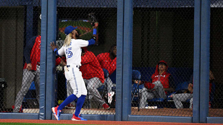 In the second at-bat of Friday’s contest, Vladimir Guerrero Jr. dove to his right, snagging a Mike Trout grounder. Attempting to catch the lead runner at second, Guerrero hucked a ball from his knees that sailed into the outfield and earned both Angels a base.