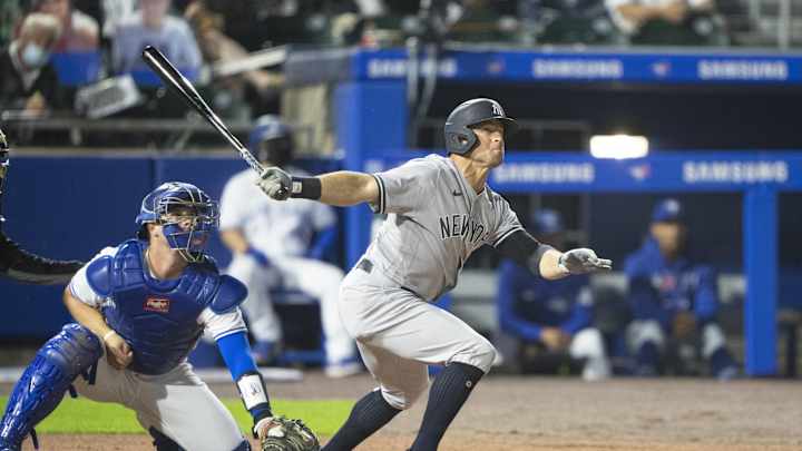Flamethrower Jordan Romano entered to face pinch hitter Clint Frazier. Romano and his shiny 1.66 ERA inherited a runner on first, before a stolen base moved that runner into scoring position. Frazier squared up a fastball and ripped a double down the line to give the Yankees the lead.