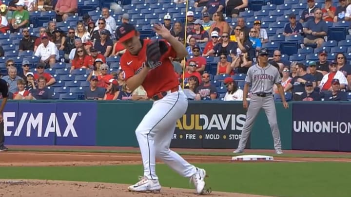 The 25-year-old lefty returned to the Cleveland Guardians' starting rotation on Monday after a stint in the minor leagues, and things didn't start well. He opened the game against the Arizona Diamondbacks by giving up back-to-back home runs, and then it got worse. He gave up a single, was able to get a double play, then threw a 1-0 sweeper that Randal Grichuk lined right off the side of his head at 105 mph.