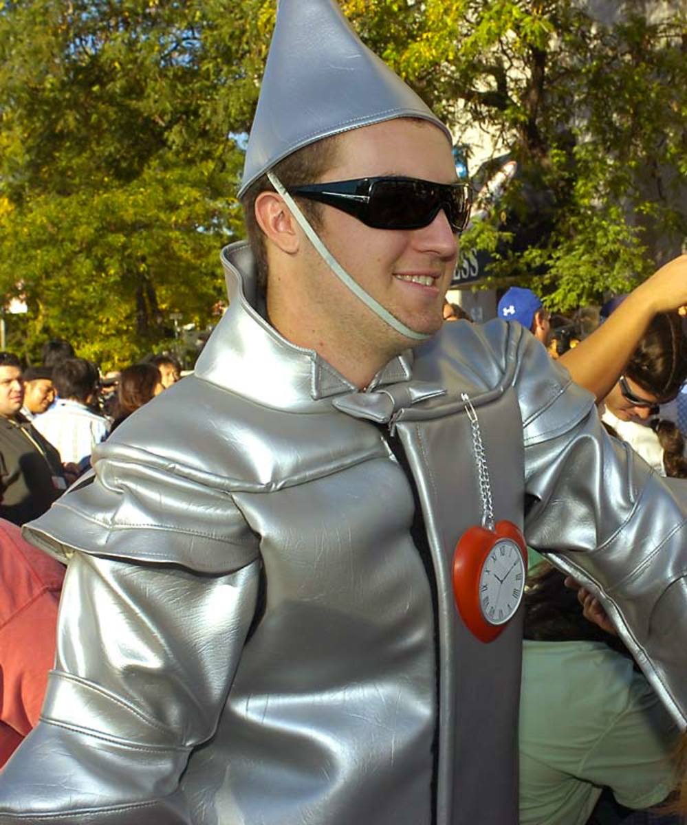 Hughes is dressed as the Tin Man.