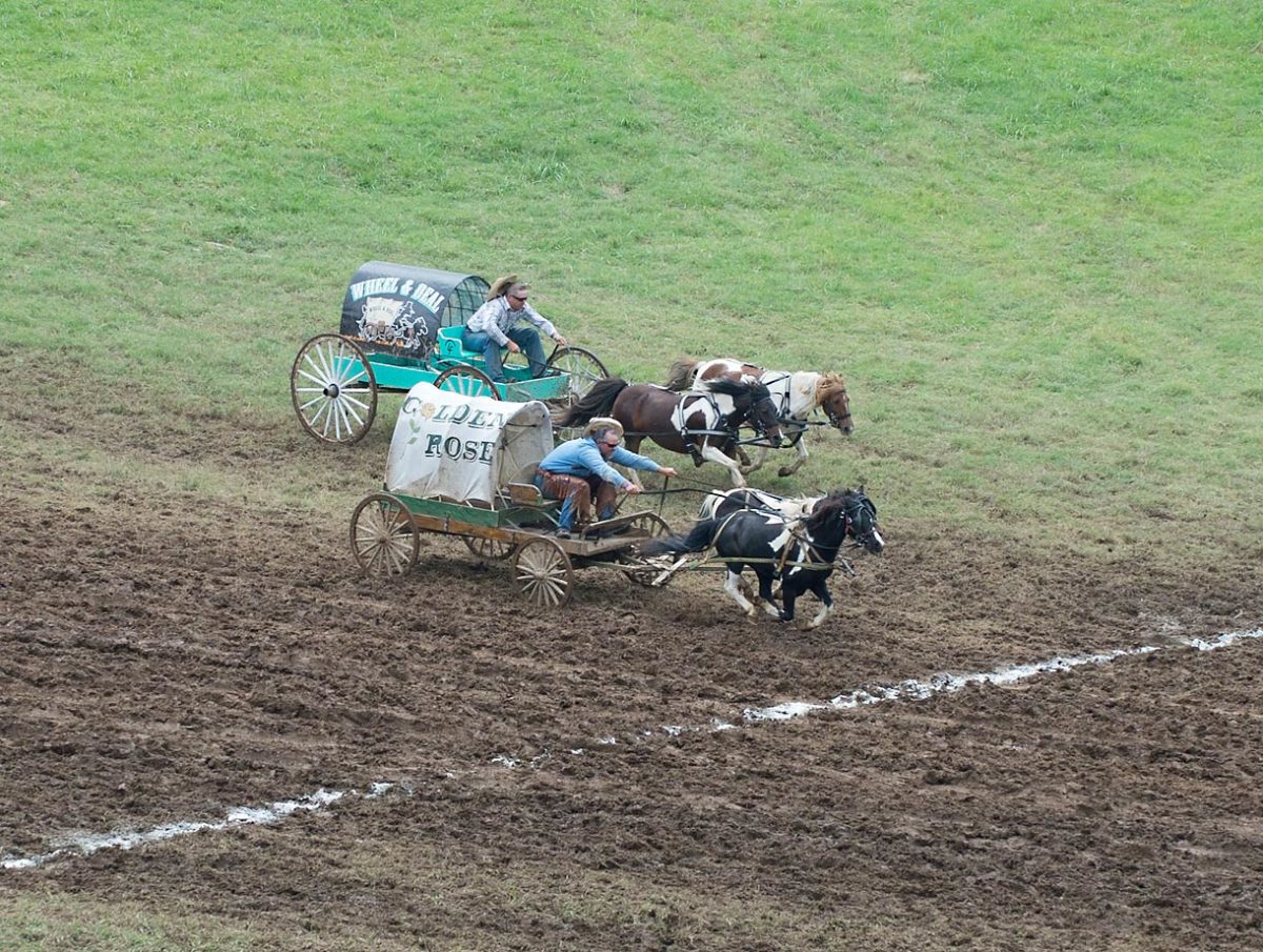 Competitors head to the finish in the 2014 National Chuckwagon Race Championship