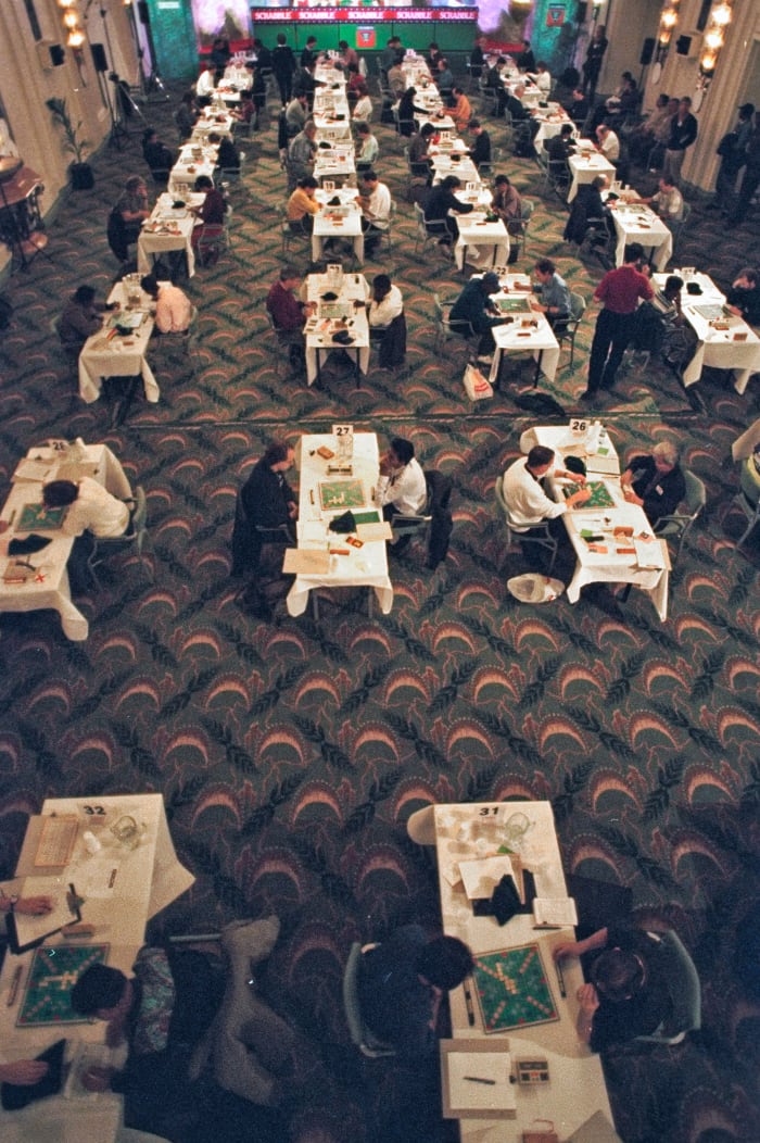 To focus on the boardroom, though, is to ignore the crucial role of those at the board. From Kingston, Jamaica, to Kingston, Ontario, tournament Scrabble would be nowhere without its most passionate players. Every rating system and pairing software employed at tournaments, every anagramming app and A.I. analysis program used for studying, every high-quality board and extra-long rack—each was the product of grassroots innovation. User-generated word lists led to Merriam-Webster’s first Official Scrabble Players’ Dictionary in 1978, and hawk-eyed enthusiasts scoured that book for mistakes to fix for a second edition.