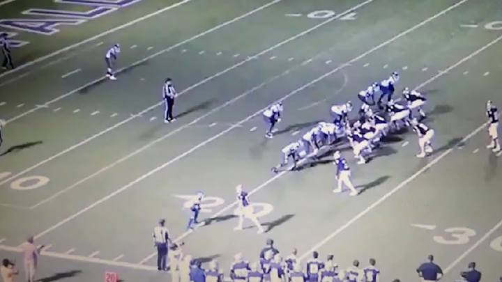Two Texas high school players tackle referee in backfield during game