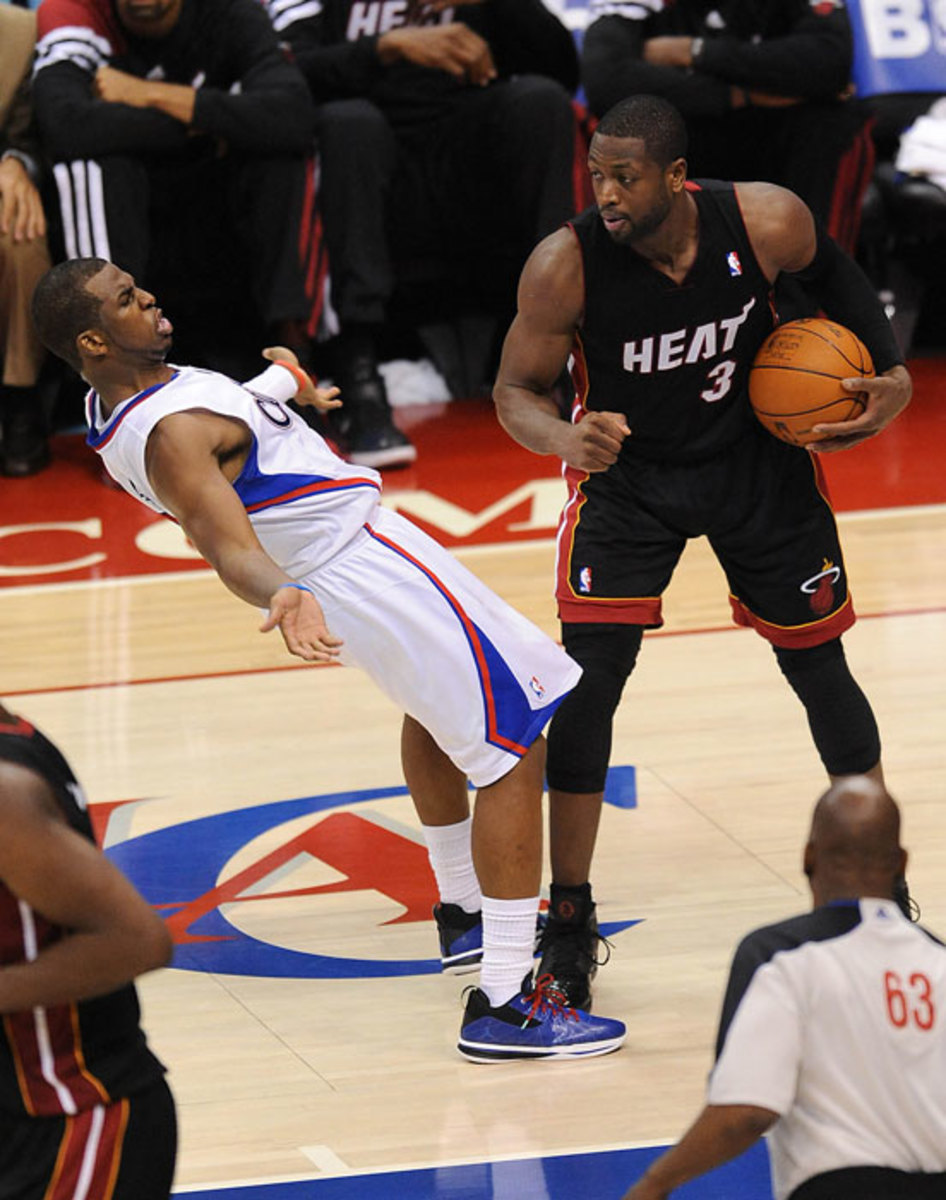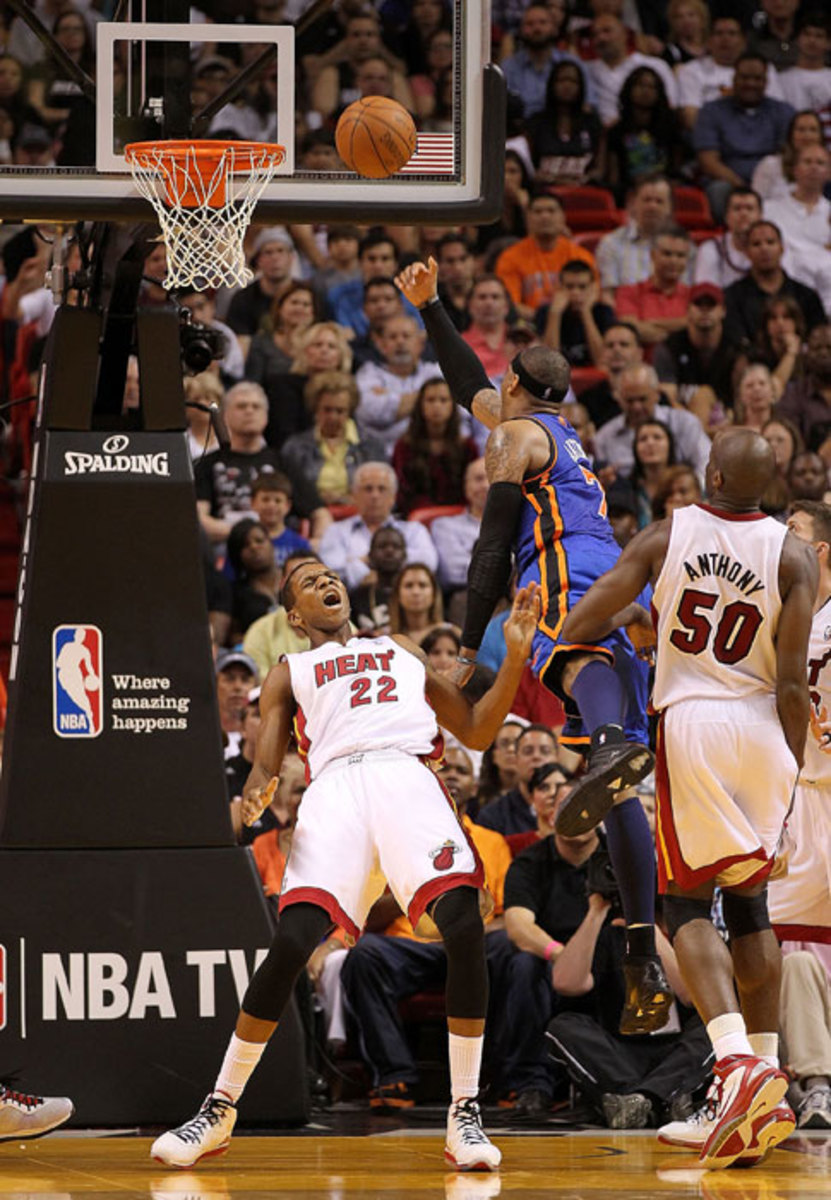 JVG's greatest flopping rant came in another Miami win over the Knicks. Van Gundy took issue with a foul on James Jones, in which he clearly flopped (as pictured, Jones did this last year against the Knicks, too). Van Gundy didn't hold back during the telecast, going as far as to say, "We're paying the commissioner like $25 million! He can come up with a solution [to end flopping]!"