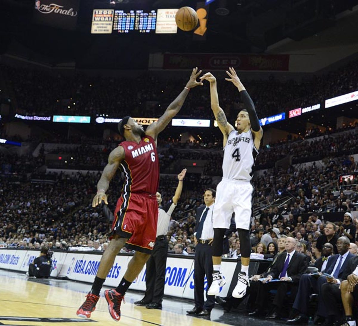 Gary Neal hit this three-pointer ahead of the halftime buzzer as the Spurs set an NBA Finals record with 16 threes in their win over Miami.