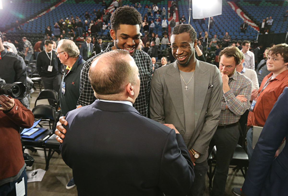 It starts with Karl-Anthony Towns. There will come a time when KAT hyperbole should be dialed back, but we're not there yet. He's 7 feet, 244 pounds, and he won't even turn 21 until early next season, yet he can do everything. Coast-to-coast on a fast break? Sure. Hit threes and stretch the floor? Yes. Punish smaller defenders with post moves? Definitely. A one-man interior defense who can also run the offense through the high post? That's the future.