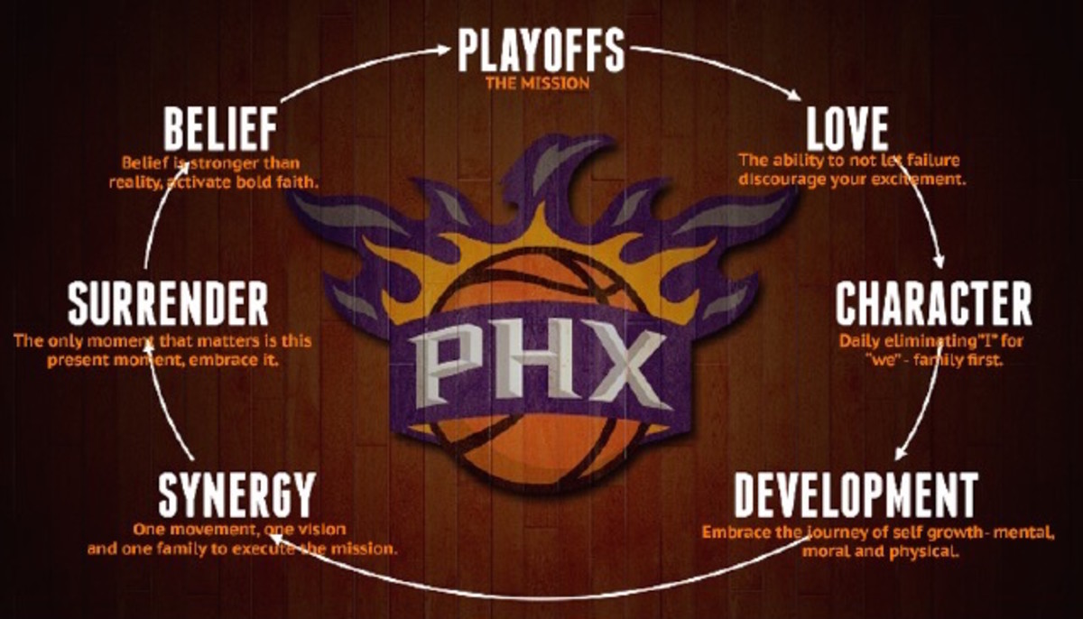 The concepts themselves are simple and applicable, but only work if the players themselves take the framework seriously. CHARACTER ("family first") and SYNERGY ("one movement, one vision") could help bring Phoenix's offense to balance between its trio of shot creators, or might be deemed quaint concepts by working professionals. Watson's ability to connect with his players—a strength according to many who work with him—is at the core of the thing. This could be a basketball culture in its infancy.