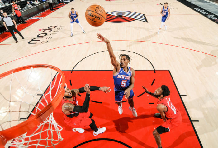 Hope begins with Randle, a legitimate All-Star candidate who’s averaging career bests in scoring, rebounds and assists. (Sepinwall says he’s “starting to talk myself into the idea of him as a long-term piece, which doesn't feel healthy to me.”) Then there’s Quickley, a late-first-round gem who has mesmerized and tantalized fans with his crafty pick-and-roll game, his heads-up playmaking and his silky midrange floater. And Barrett, a former No. 3 pick who’s showing glimpses of progress after a lackluster rookie season. And Mitchell Robinson, the pogo-stick center, is fouling less, rebounding more and defending with verve. He’s still just 22.