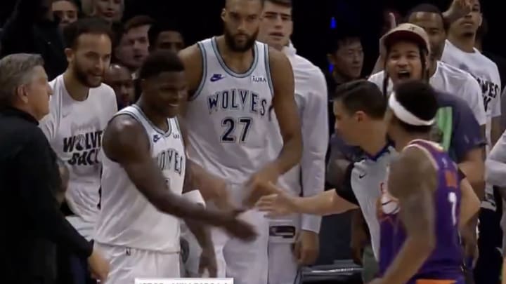 Edwards then went from mean-mugging to high-fiving as he dapped up referee Zach Zarba, who was just trying to signal where the ball would be taken out of bounds. Zarba tried to act like nothing happened, but he and Ant clearly have their own special handshake now.