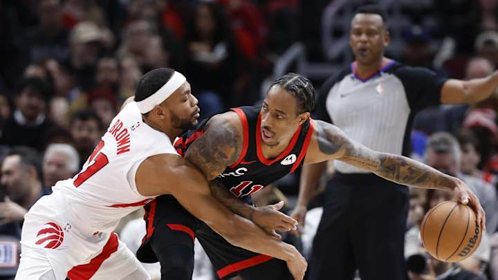 The Raptors led by as many as eight, 102-94, but the DeMar DeRozan sparked the Bulls with a thunderous slam dunk over the defense of Bruce Brown to pull them within four, 104-100, with 7:11 remaining.