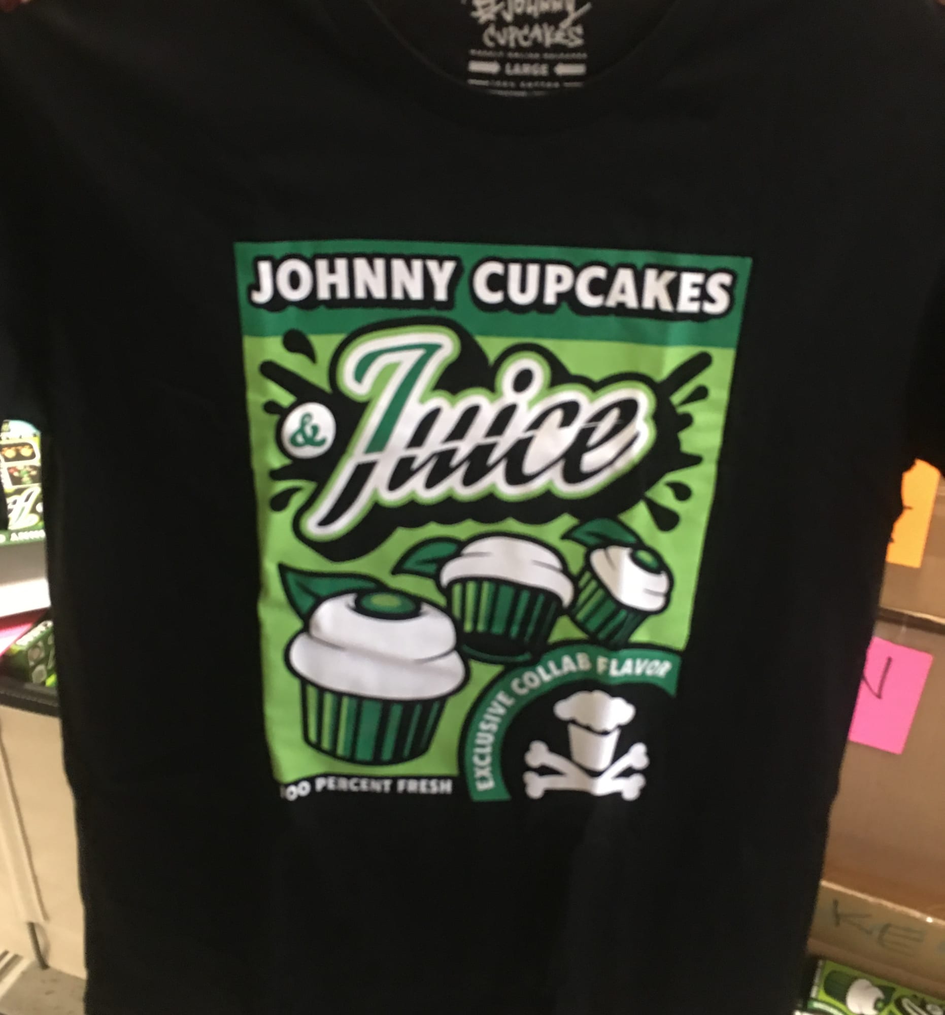 Clarke added that from the cupcake aroma that greets people when they walk in the store to the refrigerator doors at the entrance and displaying the shirts in fridges, "this store (is) built on an aesthetic, it's artistic, which is what 7uice definitely strives itself on, so this was a no-brainer collab."