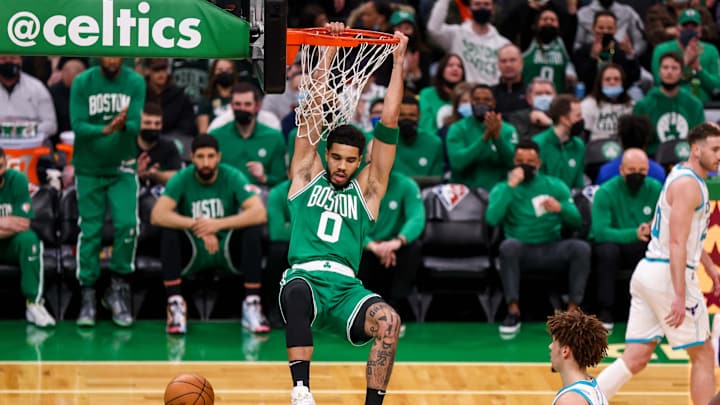 From Jayson Tatum's two-handed jam to plays at both ends by Miles Bridges, Grant Williams' full-extension (at the) rim rejection, and Terry Rozier delivering the dagger, here are the top five plays from Wednesday's game between the Celtics and Hornets.