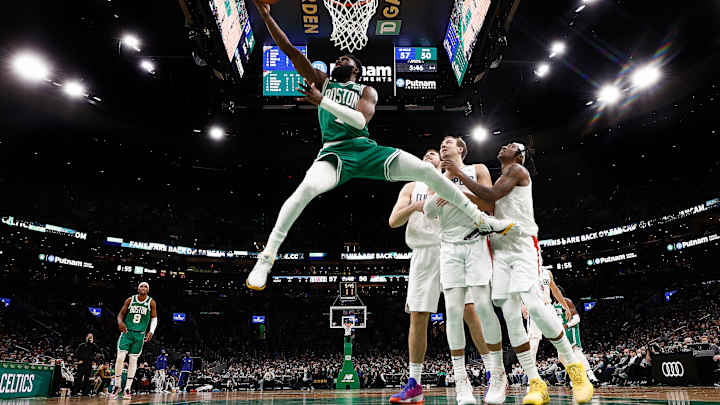 Responsible for carrying the scoring load in Jayson Tatum's absence, Jaylen Brown made a living in the restricted area, scoring all but four of his field goals from there, en route to a 30-point performance.