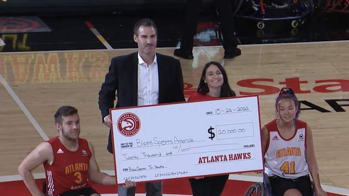 As part of the celebration for ‘Kid’s Night,’ the Atlanta Hawks announced additional support for BlazeSports America’s Jr. Hawks Wheelchair Basketball program to assist with items such as practice facility expenses, athlete travel support, team uniforms, and equipment repair.