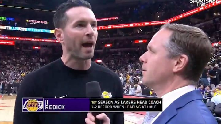 Redick sounded off on the Lakers’ performances at the end of quarters in a sideline interview with reporter Mike Trudell at halftime:
