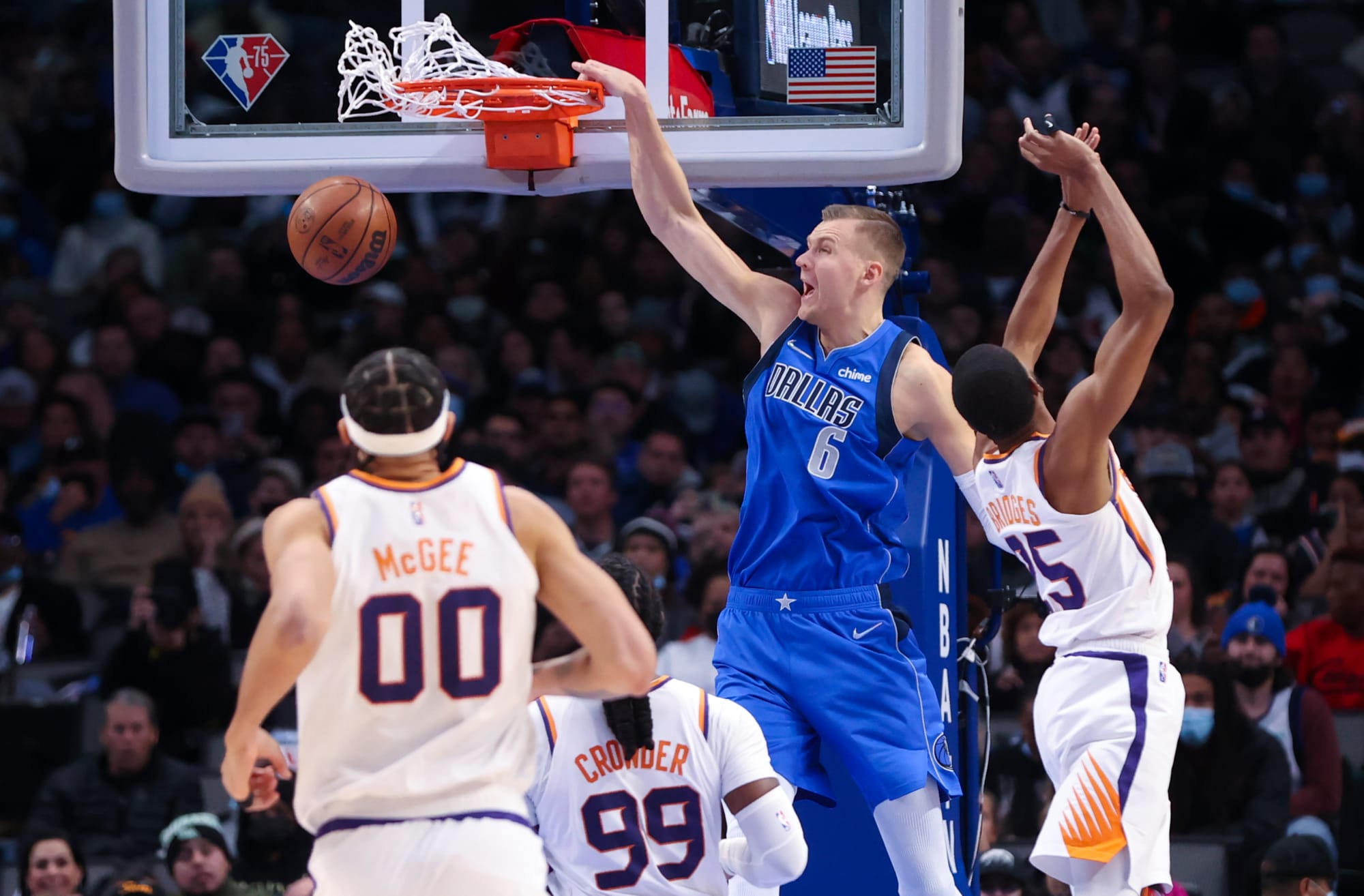 Kristaps Porzingis found success around the basket vs. the Suns, with a few dunk gems. Porzingis finished with 18 points, 11 rebounds and two blocks. Off the bench, Dwight Powell provided a major energy boost with six points.